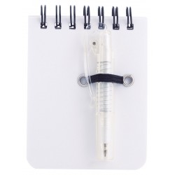 Libreta de Apuntes 60 hojas, con Bolígrafo 8 cm incluido. Tapa y contratapa plásticas. Espiral doble cero color negro.