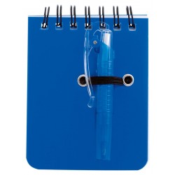 Libreta de Apuntes 60 hojas, con Bolígrafo 8 cm incluido. Tapa y contratapa plásticas. Espiral doble cero color negro.