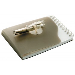 Libreta de Apuntes 68 hojas, con Bolígrafo 8 cm incluido. Tapa y contratapa plásticas rígidas en colores empavonados.
