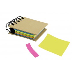 Set Ecológico de 180 notas adhesivas con Tapa Dura de Cartón 2mm. forrado en papel Kraft. Incluye 100 banderitas adhesivas de 5 colores (20 por color) + 80 notas adhesivas amarillas medianas de 4 colores (20 por color). Separadores de cartón reciclado negro.