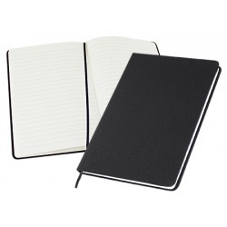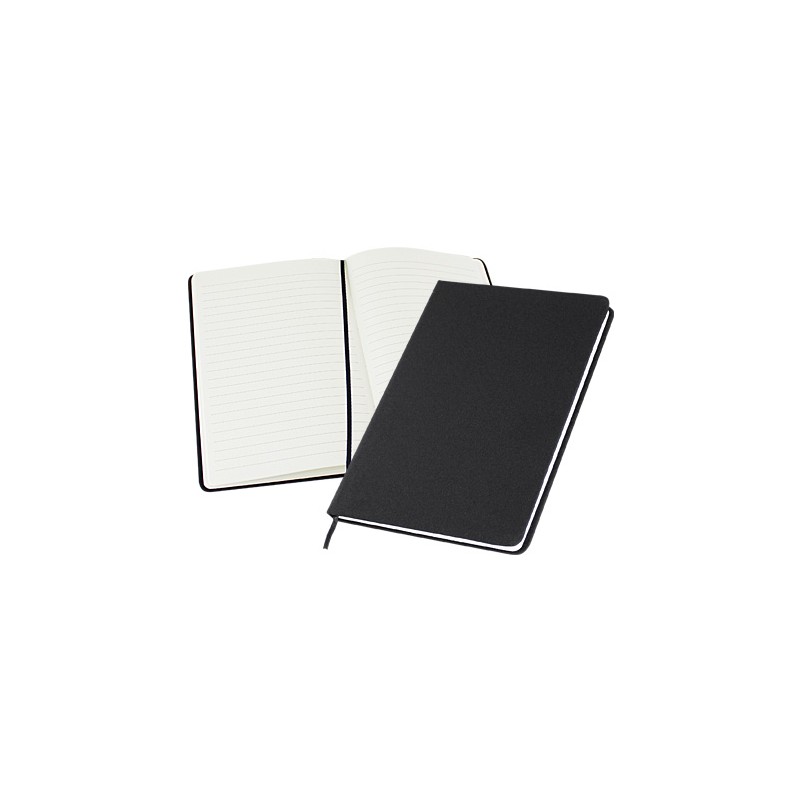 Cuaderno tamaño A5, con cubierta de cartón piedra forrada en tela lino de 2mm de espesor. Interior 80 hojas lineadas amarillas de 80gsm. Incluye banda separador de hojas al tono. Presentación individual en bolsa de polipropileno.