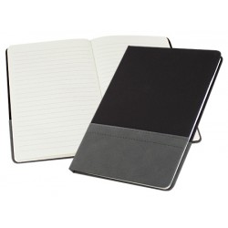 Elegante cuaderno tamaño A5, con cubierta de cartón piedra forrada en Velvet PU (tela aterciopelada) bicolor de 3mm de espesor, con doble costura. Interior 80 hojas lineadas amarillas de 80gsm. Presentación individual en bolsa de polipropileno.