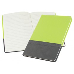 Elegante cuaderno tamaño A5, con cubierta de cartón piedra forrada en Velvet PU (tela aterciopelada) bicolor de 3mm de espesor, con doble costura. Interior 80 hojas lineadas amarillas de 80gsm. Presentación individual en bolsa de polipropileno.