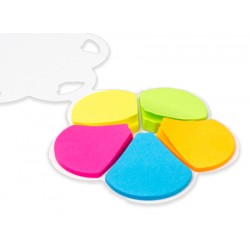 Memo set Ecológico con tapa y contra-tapa de cartulina blanca reciclada. Incluye 150 banderitas adhesivas de colores con forma de pétalo de flor.