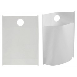Basurero para vehículo, en tela no tejida (TNT) de 80g/m2, con fuelle interior de 10cm de fondo. Ideal para usar como basurero o papelero, en la palanca de cambio o asiento trasero.