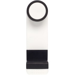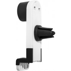 10 x 3 x 1,6 cm. (cerrado) 13,5 x 3 x 1,6 cm. (abierto). Plástico. Soporte para celular para incorporar en la rejilla del aire acondicionado. En sus extremidades detalles engomados negros.