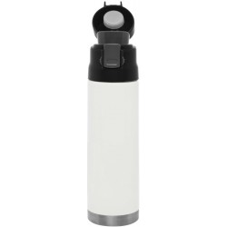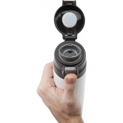 Ø 7 x 25,5 cm. (aprox). Capacidad 500 ml. Acero inoxidable. Diseño de doble pared exterior: acero inoxidable 201 / interior: acero inoxidable 304. Tapa plástica con botón que permite la apertura. Traba de seguridad.No es un termo, cumple la función de mug.