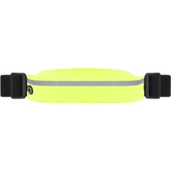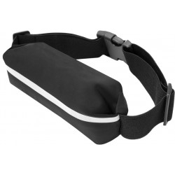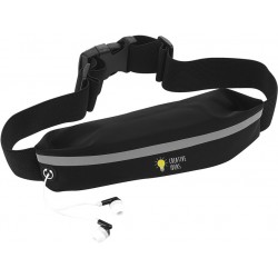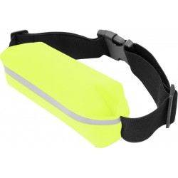 85 x 4,2 cm. Poliamida. Un bolsillo con cierre, salida para auriculares, faja reflectaria y correas elásticas. El material es impermeable