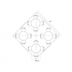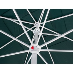 Quitasol gigante cuadrado de 4x4m, con 4 cascos de lona Poliéster UV impermeable de 180g. Contiene asta de Acero recubierto de 60mm de diámetro x 3.4m de altura, sistema de apertura manual. Para su instalación, se recomienda anclar el quitasol directamente a un hoyo en el concreto o pavimento, o bien utilizar la base P24, la que también se debe anclar con 4 pernos (incluídos en la base) al concreto o pavimento. Si el largo de estos 4 pernos no es suficiente, se recomienda comprar pernos adicionales más largos.