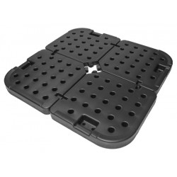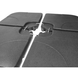 Set de 4 bases plásticas cuadradas rellenables (con agua, arena o piedrecilla, para darle mayor peso), con una capacidad total de 60kg o 60L. Bases rellenables para Quitasoles P11 y P13.