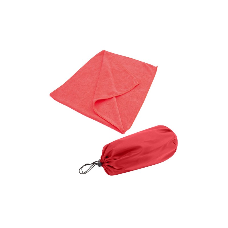 Toalla deportiva en tela Microfibra. Presentación dentro de bolsito de nylon 190D/PU.