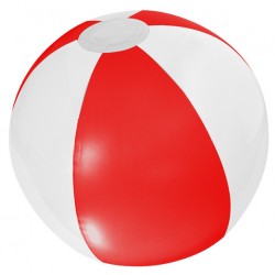 Pelota de Playa Inflable de PVC con 6 gajos. Se entrega desinflada dentro de una bolsita transparente de 15 x 15 cm. Se puede imprimir fácilmente en serigrafía ya sea desinflada o inflada.