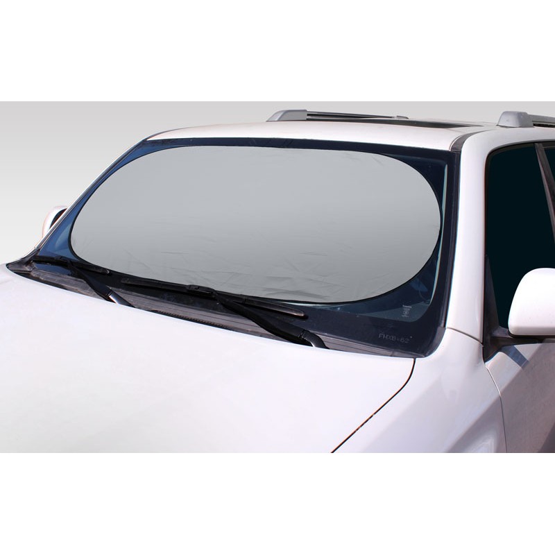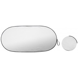 Parasol plegable de nylon plateado para el vehículo. Presentación dentro de funda redonda de nylon plateado. Gran área para impresión.