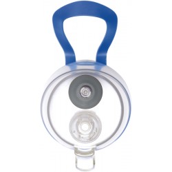 Ø 6,5 x 18 cm. Capacidad 550 ml. Plástico. Tapa plástica a rosca, boquilla deportiva engomada y rociador con gatillo que tira una suave lluvia. Correa de color.