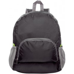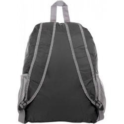 40 x 25 x 15,5 cm. Capacidad 12,5 litros aprox. Ripstop 210D (material anti-rasgado). Bolsillos laterales de red en color gris con tiras amarillas reflectivas en ambos lados. Detalles en gris en la manija y el cierre.