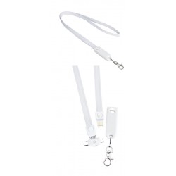 Connect Lanyard Multicargador, con terminal de carga USB y multicables Micro USB / iPhone / Type C. Incorpora nueva tecnología de cable cargador dual Micro USB y iPhone (en el mismo terminal). Compatible con dispositivos Android, Apple y Type C. Lanyard de poliéster de 90 x 1.3cm. Terminal plástico ABS blanco giratorio con tapa. Presentación en bolsa OPP con gráfica descriptiva. Producto con aprobación CE, ROHS, FC.
