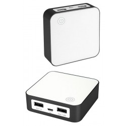 Power Bank cargador USB de plástico ABS con borde metálico. Capacidad 8400mAh. Incluye cable USB + 4 adaptadores para iPhone 4, 5 y 6, Samsung Galaxy, Mini-USB, etc. Batería recargable incorporada. Presentación en caja blanca de regalo.