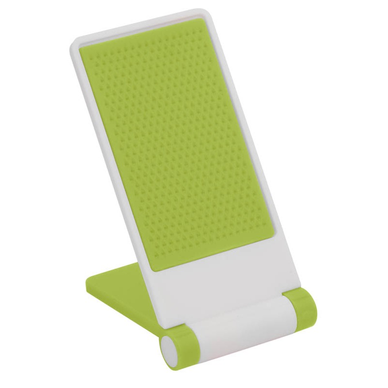 Tu posa-móvil entretenido.  Soporte abatible para celular, con superficie adherente de color.