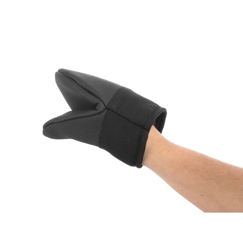 Mitón de Microfibra negra 70g/m2, con refuerzo de goma antiflama, para horno y parrilla.