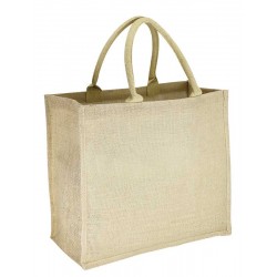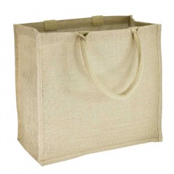 Bolsa de Yute modelo "Shangri-La", con recubrimiento laminado interior. Fuelle de yute. Manillas de cordón acolchado de yute de 40 x 1.5 cm. aprox. c/u.