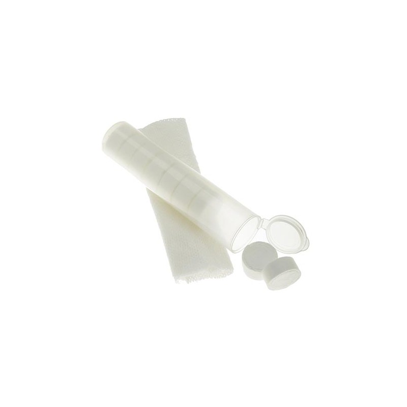 Estuche plástico rígido con 10 toallas de papel comprimidas.