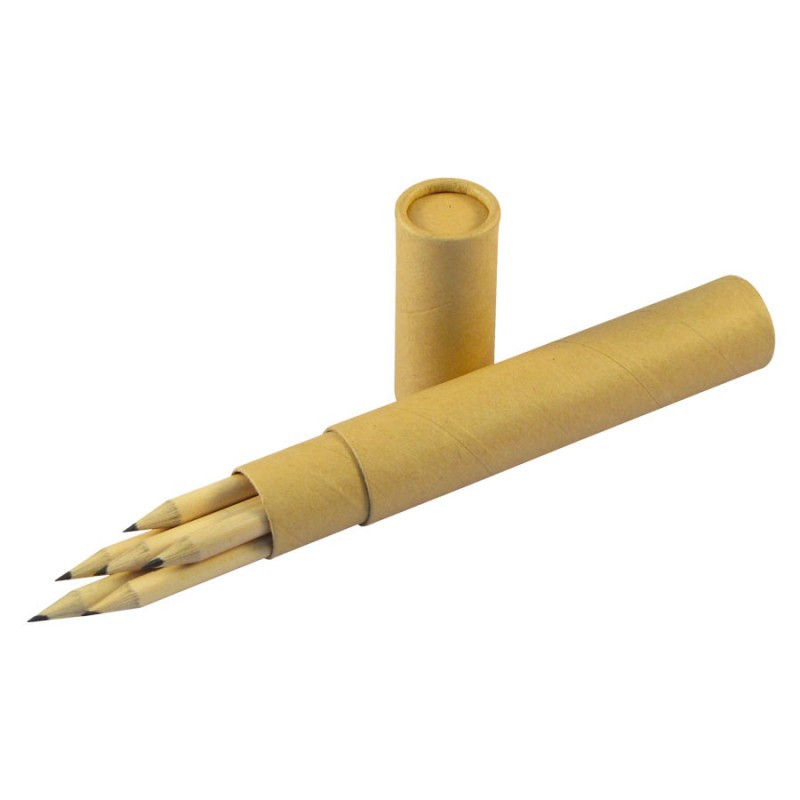 Set de 6 Lápices Grafito Negro, en Estuche cilíndrico de Cartón Reciclado.