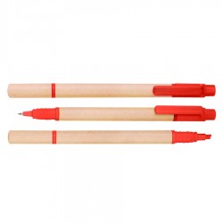Bolígrafo Ecológico de cartón reciclado con destacador de color. Escritura azul.