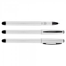 Roller Pen plástico modelo «Cooper» con puntero touch-screen para pantalla táctil, tinta negra. Cuerpo de color metalizado.