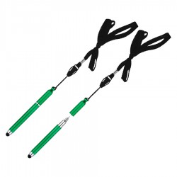 Bolígrafo «Touch-Screen» con goma posterior negra para pantalla táctil. Incluye lanyard colgante negro. Escritura azul.