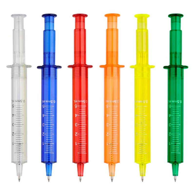 Bolígrafo plástico promocional «Jeringa». Escritura Azul.