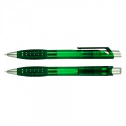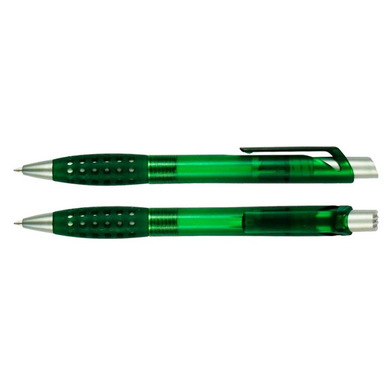 Bolígrafo plástico modelo «Punch» con grip de goma con orificios. Escritura azul.