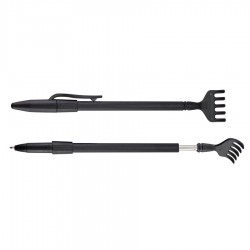 Bolígrafo plástico de color con tapa, con Manito Rascadora expansible (tipo antena). Escritura azul.