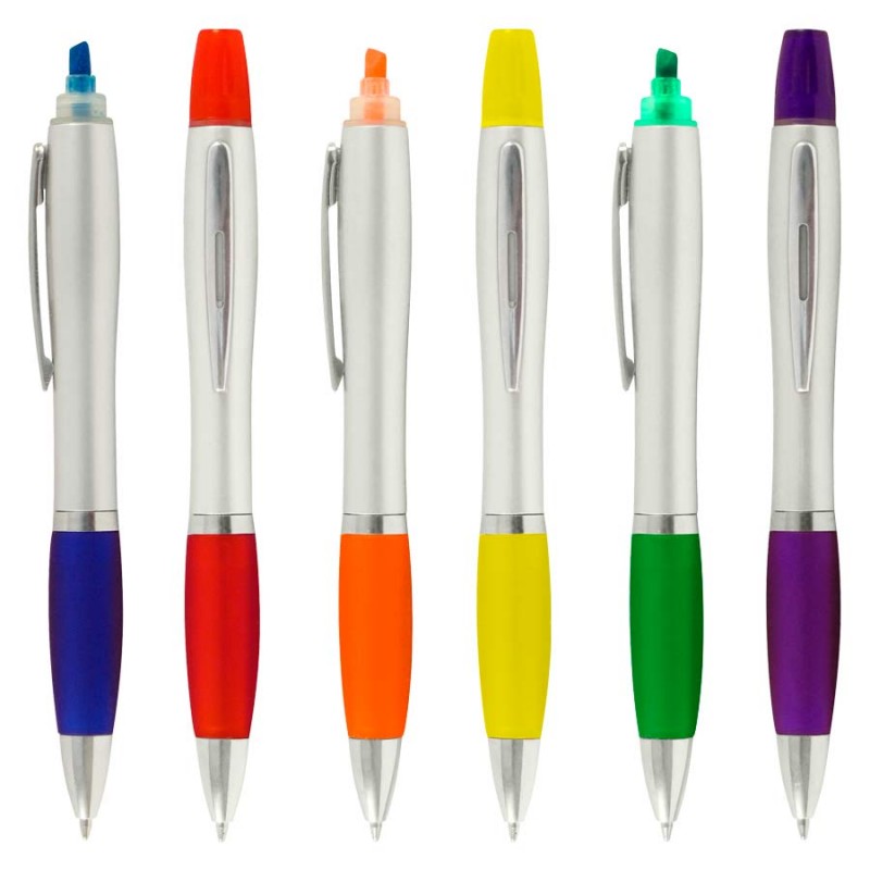 Bolígrafo Promocional «Wind Satin» con Destacador. Escritura Azul.