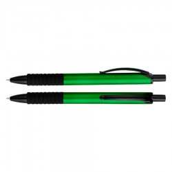 Bolígrafo «Vulcano» con cuerpo de color metalizado opaco y terminales negros. Escritura azul.