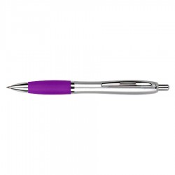 Bolígrafo plástico plateado con goma de color, modelo «Wind Satin». Escritura Azul. El Bolígrafo más famoso del mundo.
