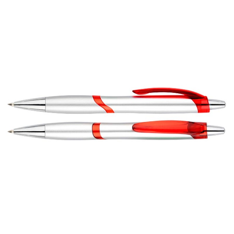 Bolígrafo plástico plateado «Júpiter». Escritura Azul.