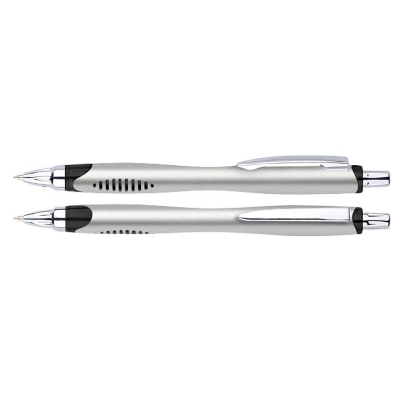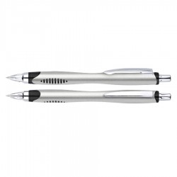 Bolígrafo plástico plateado «Motion». Escritura Azul.