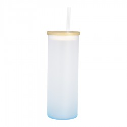 Botella de Vidrio Borosilicato para Sublimación, para líquidos fríos, con tapa de Bamboo y bombilla plástica empavonada. Capacidad 620ml. Presentación bolsa plástica empavonada + caja de cartón blanco. Calidad Premium ORCA.