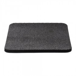Posavaso cuadrado de 10x10cm. y 5mm de espesor, esquinas redondeadas, con base de silicona negra y cubierta de tela poliéster blanco para Sublimación.