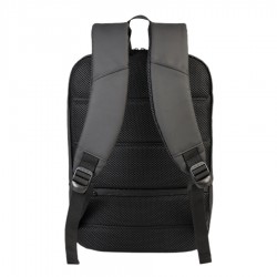 Deluxe Mochila Porta-Notebook modelo «VECTOR». En tela poliéster 600D/PVC + eco-cuero PU 210D. Capacidad 15 litros, tamaño 29.5 x 42 x 12 cm. Incluye 2 compartimentos interiores reforzados y acolchados para Laptop, espalda acolchada con red de ventilación + bolsillo de seguridad con cierre y bolsillo delantero.