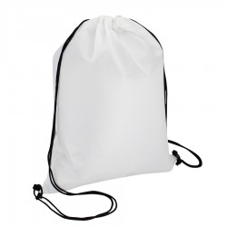 Mochila simple de 210D/PU poliéster, con tiras de cordón negro. Color blanco ideal para imprimir en sublimación.
