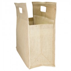 Bolsa de Yute modelo «Biosfera», con recubrimiento laminado interior. Fuelle de yute. Parte superior reforzada con doble tela yute y manillas troqueladas.