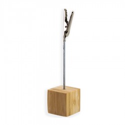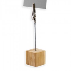Memo Clip Porta-Tarjetas Metálico con Base Cubo de Madera de Bamboo.