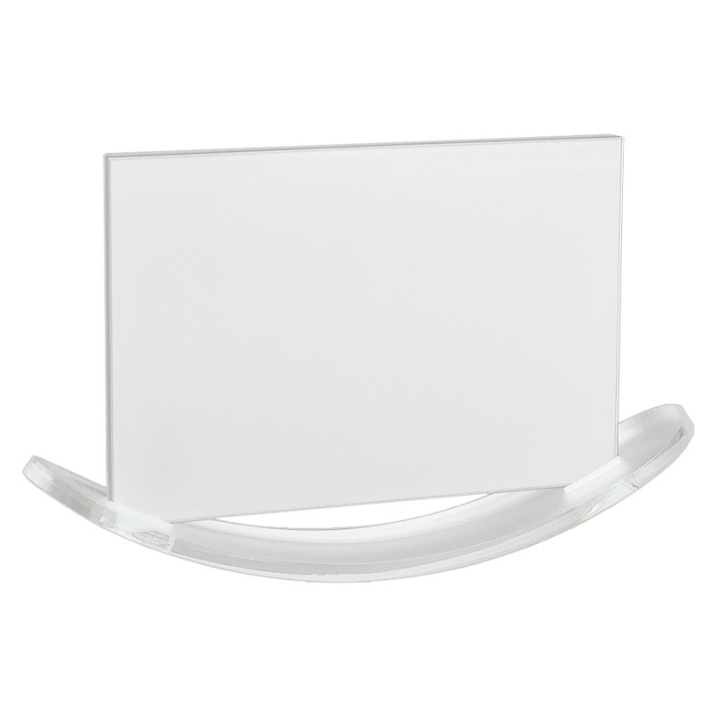 Porta-Retrato balancín para Sublimación. Base curva Acrílico frozen. Porta-Foto de Vidrio de 15.3 x 10.2 x 0.3 cm. Presentación en caja de Cartón blanco.