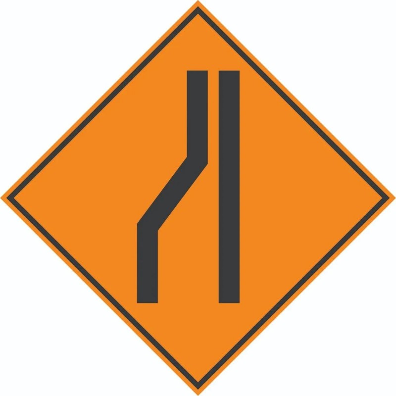 Letrero Angostamiento a la derecha y/o Izquierda. Medidas 60x60