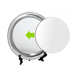 Galvano Plato de Acero inoxidable cromado tamaño grande, con circunferencia metálica para Sublimación. Presentación en bolsa plástica.