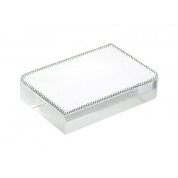 Mini-Trofeo rectangular de Cristal sólido para Sublimación, con 2 vértices redondeados. Presentación en caja de cartón azul.