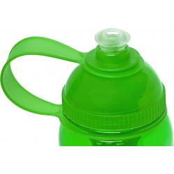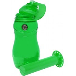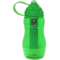 Ø 6,5 x 19,5 cm. Capacidad: 500 ml. Plástico. Botella con cilindro extraíble, sirve para enfriar las bebidas. Tapa rosca y boquilla deportiva de goma. Viene con brújula de decoración. No utilizar con bebidas gaseosas