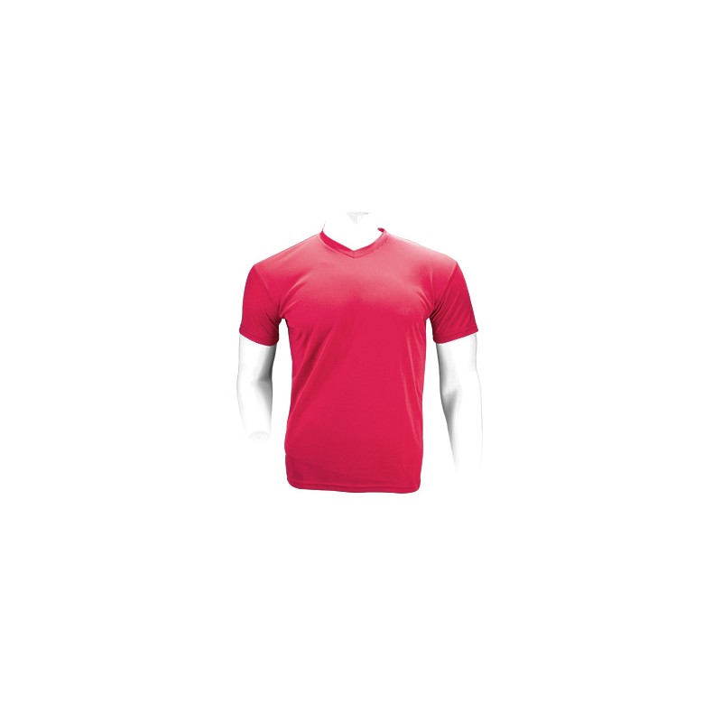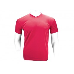 Polera 100% POLIÉSTER de 150gr/m2, para HOMBRE. Cuello en "V", manga corta. Presentación individual en bolsa de polipropileno transparente.