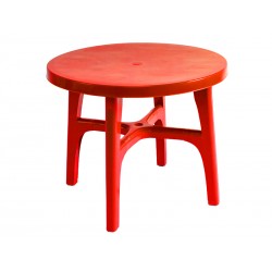 Mesa Plástica redonda modelo "Roma" de Polipropileno. Cuenta con base de 4 patas desarmables adosadas (unidas entre sí), lo que le da una resistancia y estabilidad superior a los modelos nacionales, con topes anti-deslizantes en las 4 patas. Ideal para terrazas, jardines, playa o eventos. Puede usarse tanto en interiores como en exterior. Es muy liviana, pesa sólo 5.6 kgs. y como es desarmable, ocupa poco espacio y es muy fácil de trasladar y guardar en grandes cantidades. Fácil de lavar. Producto importado de calidad superior.